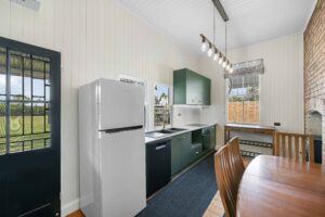 – Air conditioned kitchen overlooking the yard and opening out to the family dining space.