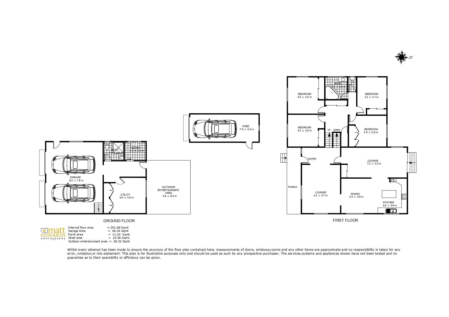 – 7.5m x 3m shed plus double lock up garage