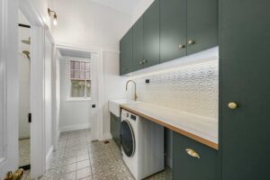 – Renovated laundry with front load washing machine